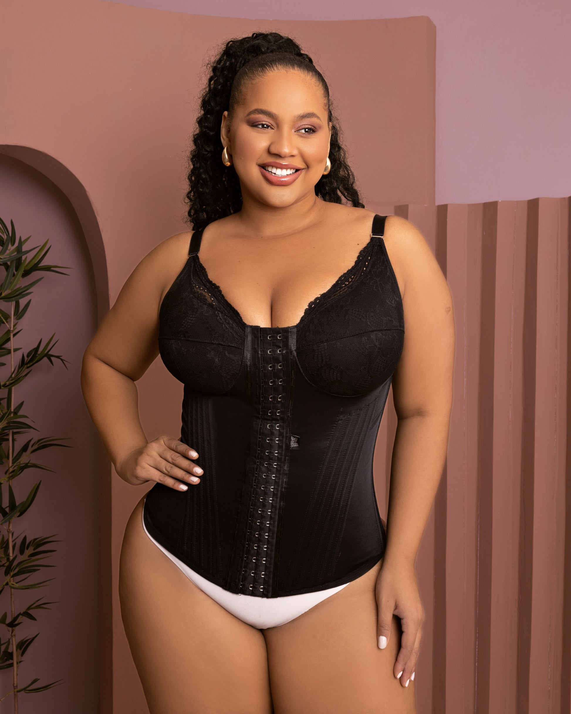 O Corpete Lis é confeccionado em malha de alta compressão, projetado para proporcionar modelagem e conforto excepcionais. Com 24 barbatanas que contam com proteção acolchoada, este corpete garante suporte sem abrir mão da suavidade ao toque. Ele oferece duas opções: com acabamento em renda na copa dos seios ou sem renda, permitindo que você escolha o estilo que mais combina com você. As alças removíveis oferecem versatilidade, permitindo que você escolha a melhor forma de usar conforme seu estilo. Equipado com 03 fechos altamente reforçados, o Corpete Lis assegura um ajuste firme e seguro. Uma escolha perfeita para quem deseja acentuar a silhueta com elegância e conforto!